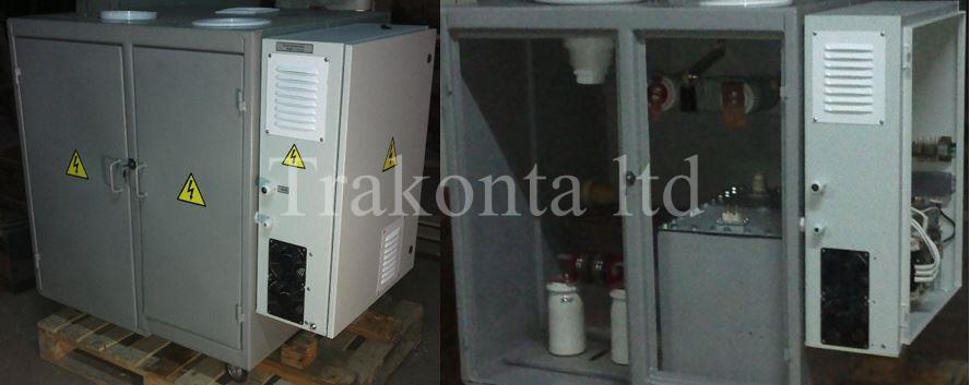 Выпрямитель-трансформатор предназначен для повышения и выпрямления входного напряжения и представляет собой металлический корпус в котором находятся повышающий трансформатор, выпрямитель и токоограничивающие дроссели. Разрядник предназначен для коммутации энергии, накопленной в конденсаторах, в нагрузку. Разрядник может быть любого типа в зависимости от требований к ГИТу.